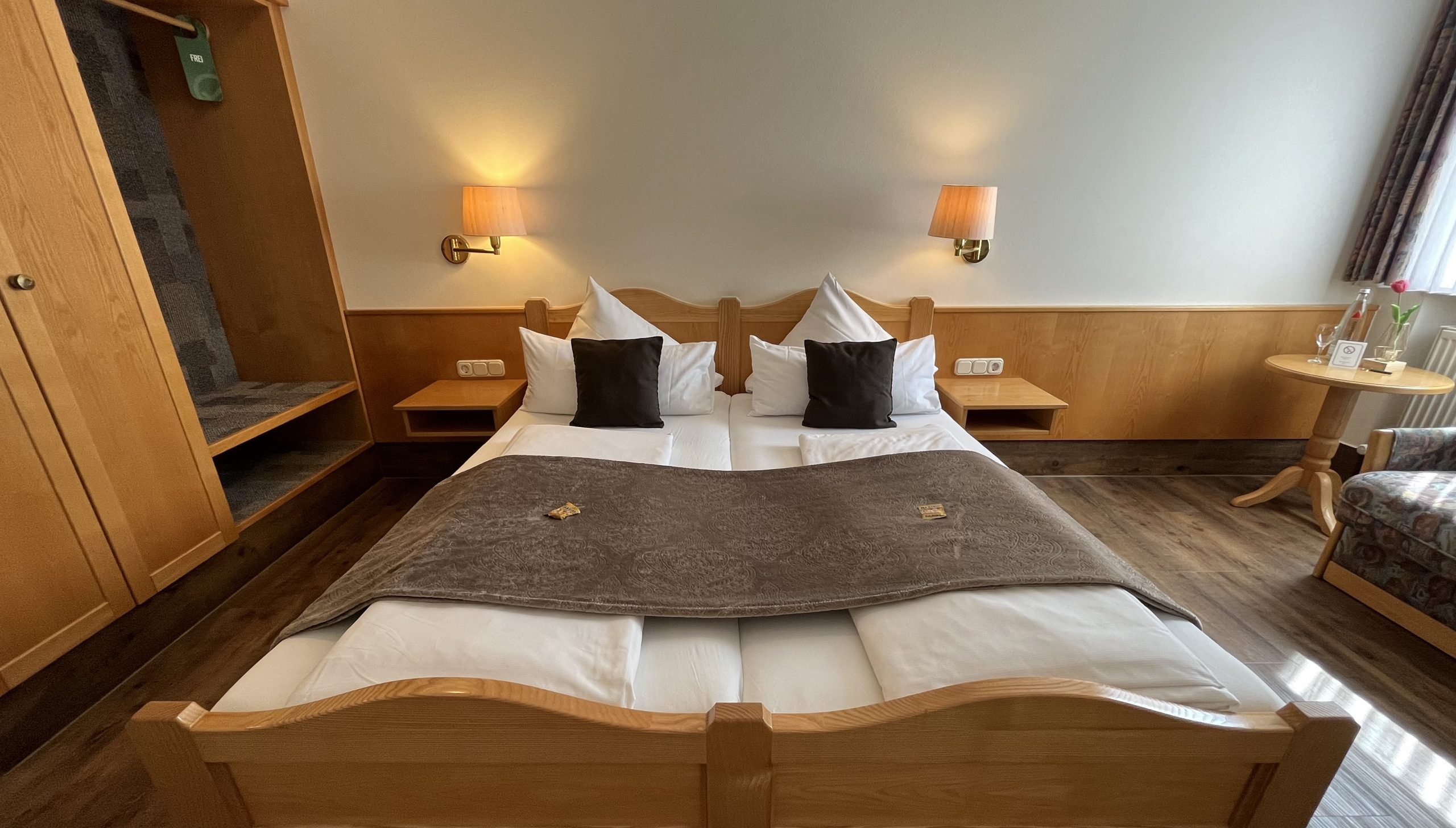 Vor kurzem haben wir unsere 16 Hotelzimmer mit Holzböden und neuen Duschen ausgestattet. Alle Zimmer verfügen über Vollholzmöbeln und bieten Ihnen allen ***Hotel-Komfort für Ihre Wohlfühlatmosphäre.